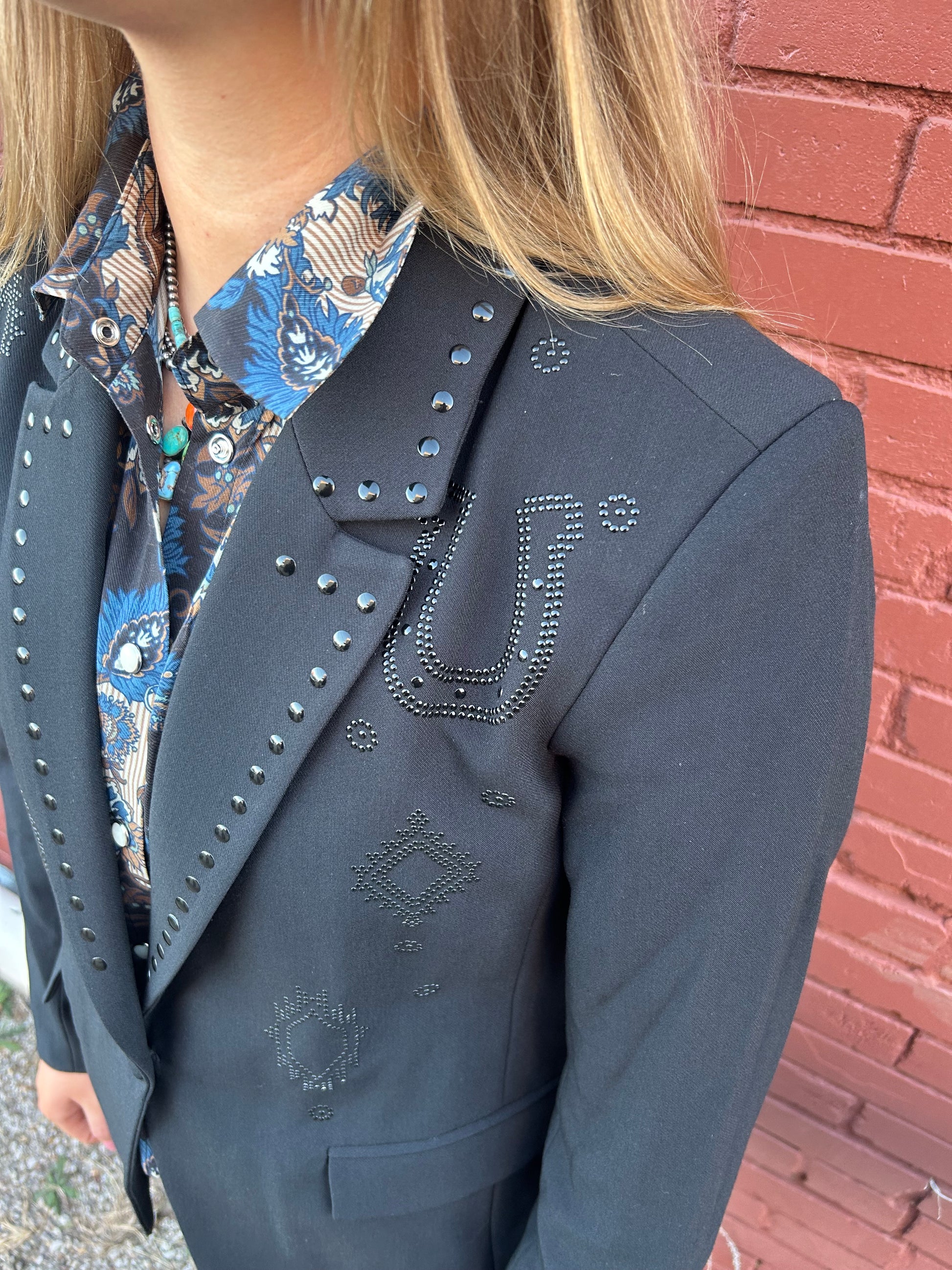 Slip into sophistication with our After Party Blazer—the perfect piece for elevating your evening look. Tailored with a polished silhouette and refined details, this blazer transitions seamlessly from dinner to drinks. Layer it over your favorite dress or pair with sleek trousers for an effortlessly chic ensemble. Whether you're heading to a gala or a night out with friends, this wardrobe essential brings just the right amount of glamour and attitude to any occasion.