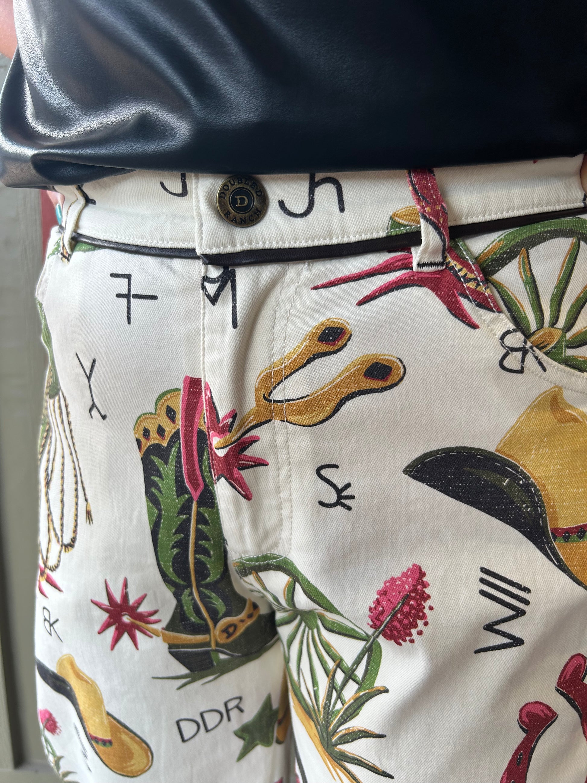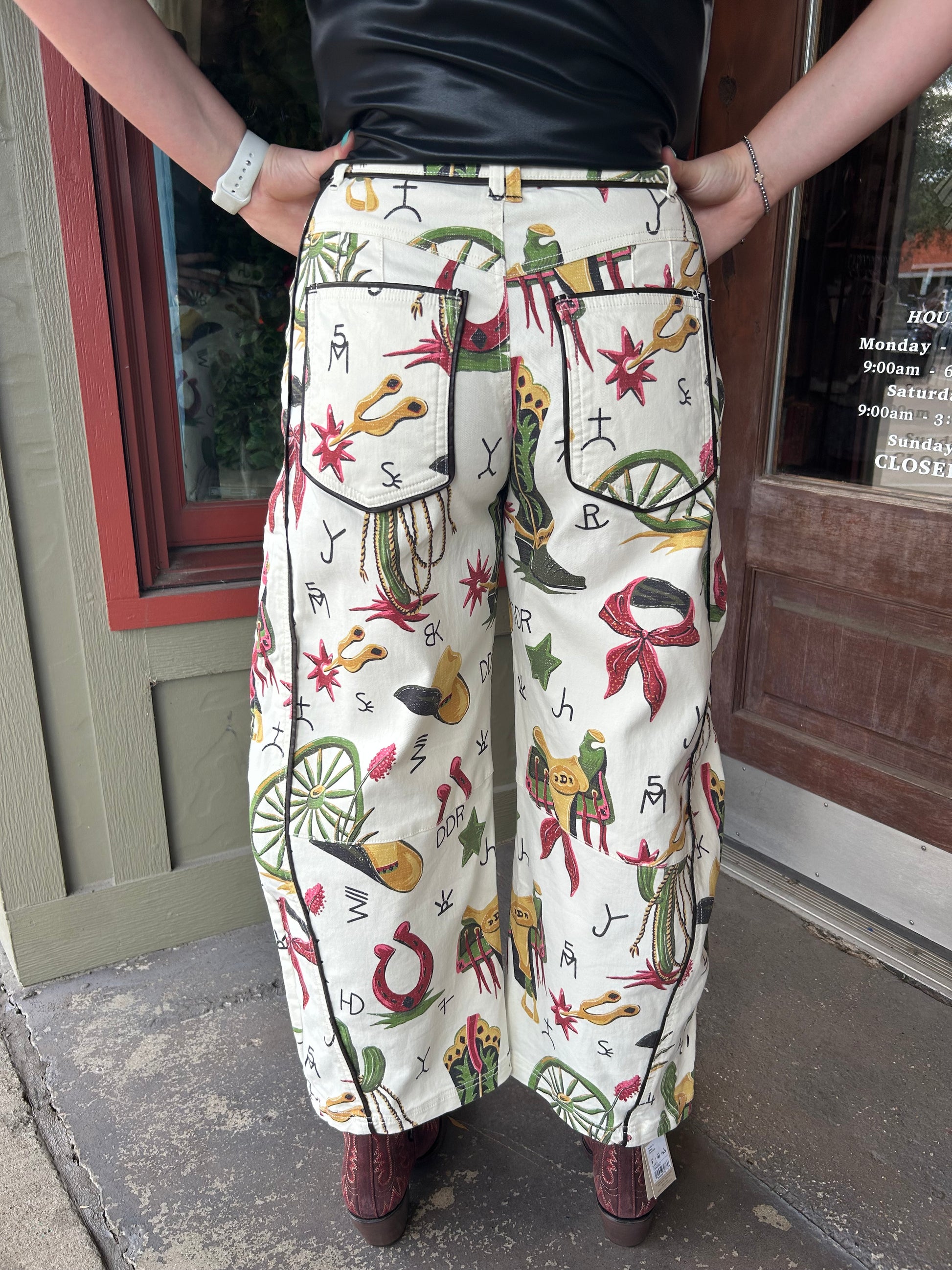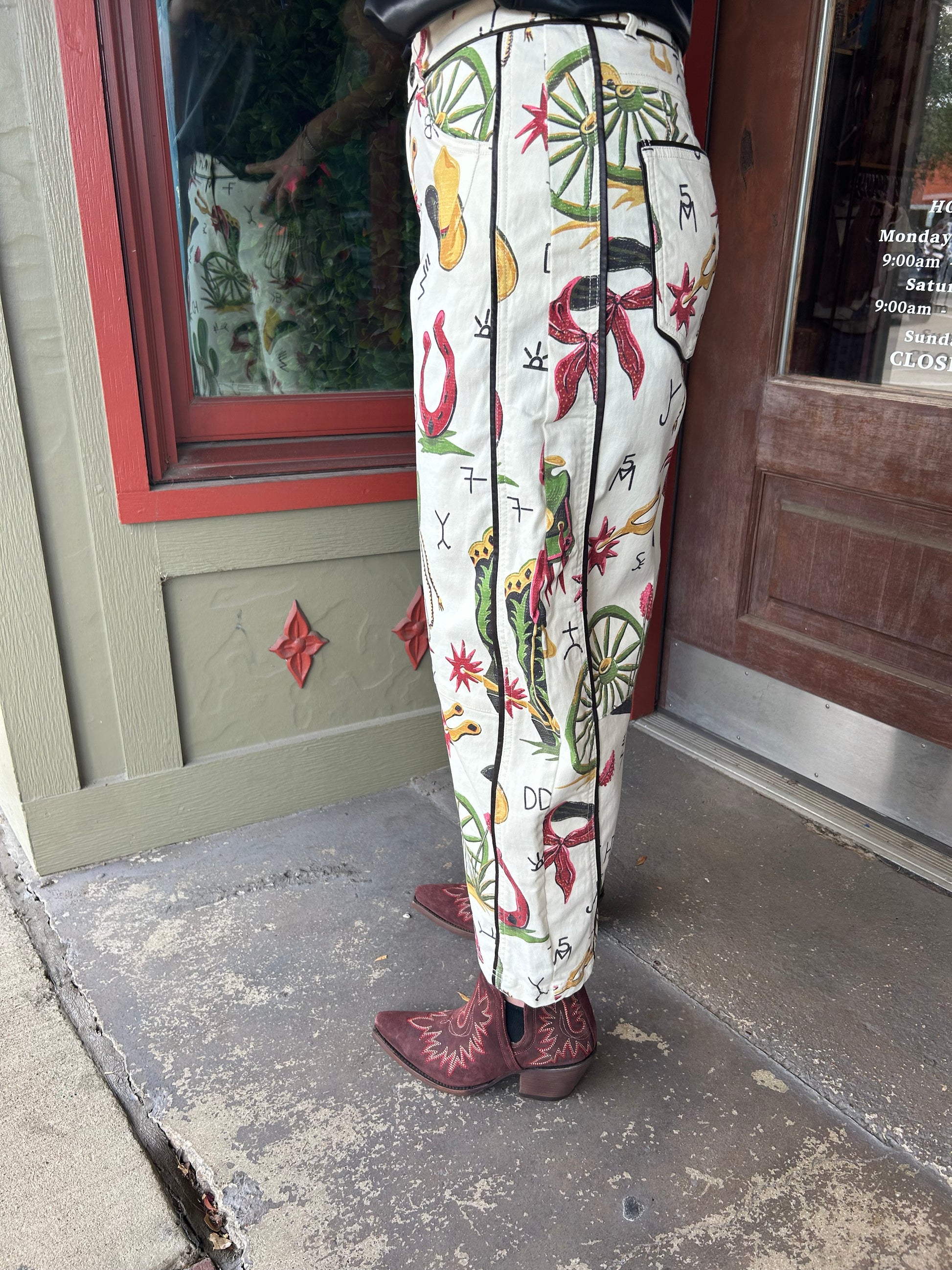 Add a touch of cuteness to your wardrobe with our Atomic Ranch Denim Pant! This adorable piece will keep you feeling stylish and comfortable all day long. Perfect for any casual occasion, these pants are a must-have for any fashion-forward individual. Upgrade your look with these charming denim pants.