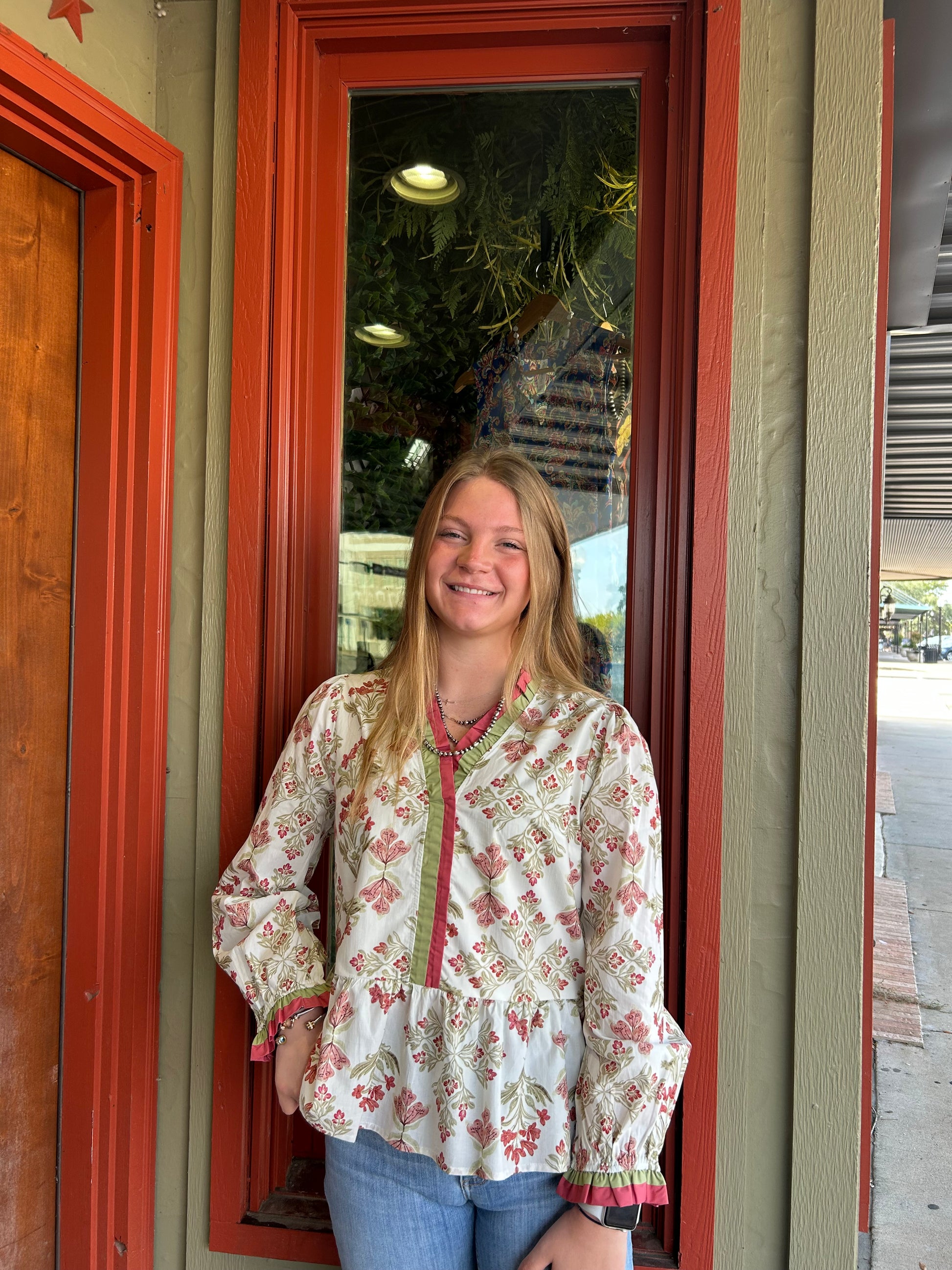 Add a splash of fun to your wardrobe with the Bert Top! Designed for easygoing style and comfort, this top pairs perfectly with your favorite jeans or skirts. Its playful fit and charming look make it your new go-to for casual days and laid-back adventures. Brighten your outfit and your mood with the Bert Top!