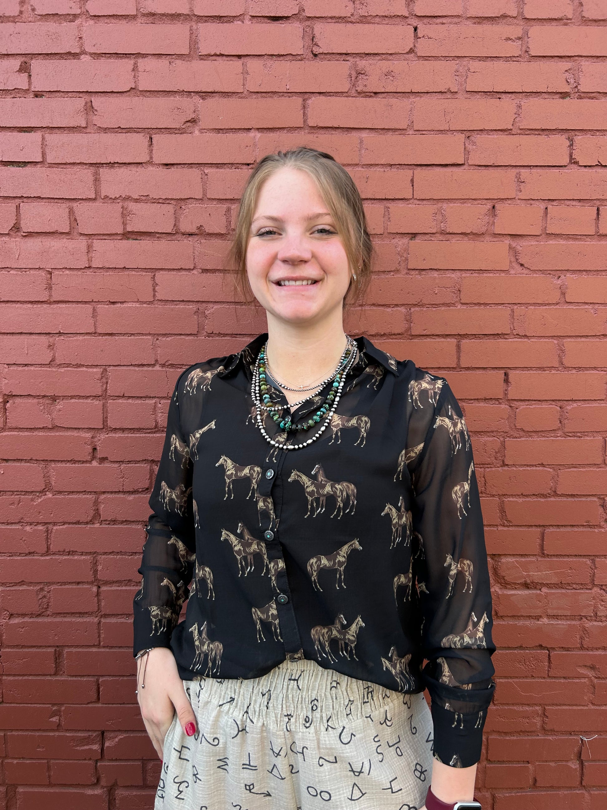 Meet your new wardrobe favorite! This Brooks Shirt brings effortless charm with a playful spirit. Perfect for casual days when you want to look put-together without trying too hard, it's the kind of piece that makes you smile every time you slip it on. Versatile enough to dress up or down, it's ready for coffee runs, weekend hangouts, or whenever you need a cute confidence boost. Simple, sweet, and totally you.