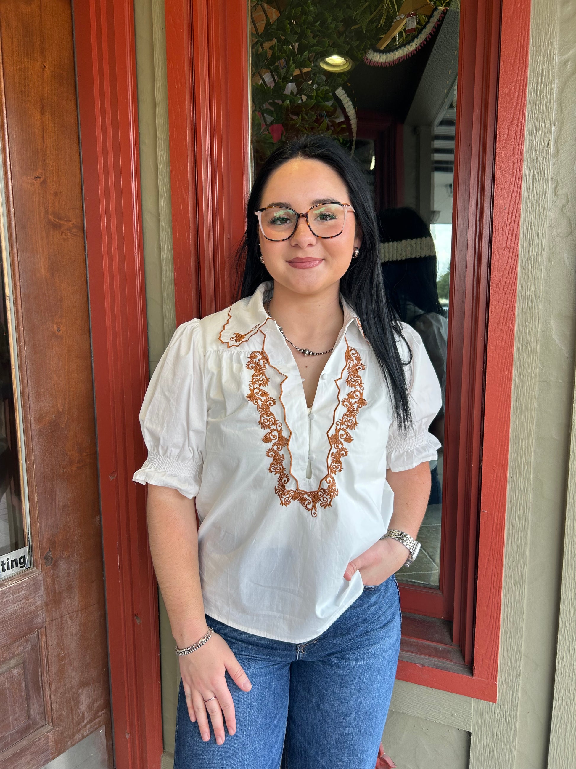 Look cute and playful with our Clair Top! This adorable top exudes a fun and quirky vibe, perfect for those who don't take themselves too seriously. Pair it with your favorite jeans for a casual and stylish look.
