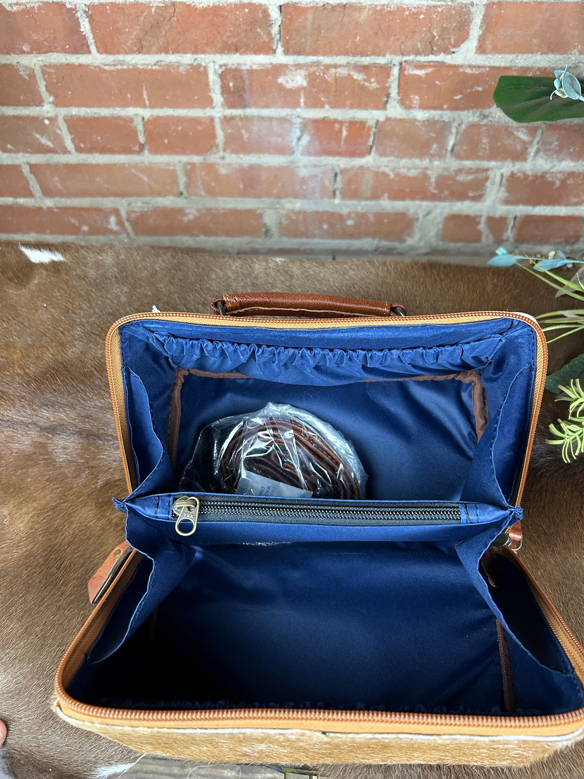 This adorable cowhide makeup box brings a touch of rustic charm to your beauty routine! Featuring a classic black and white cow-print design, it's the perfect spot to corral your cosmetics, brushes, and beauty essentials. Whether you're organizing your vanity or packing for a getaway, this charming storage solution keeps everything in one cute, easy-to-grab spot. A fun way to add personality to your space while keeping your glam squad organized!
