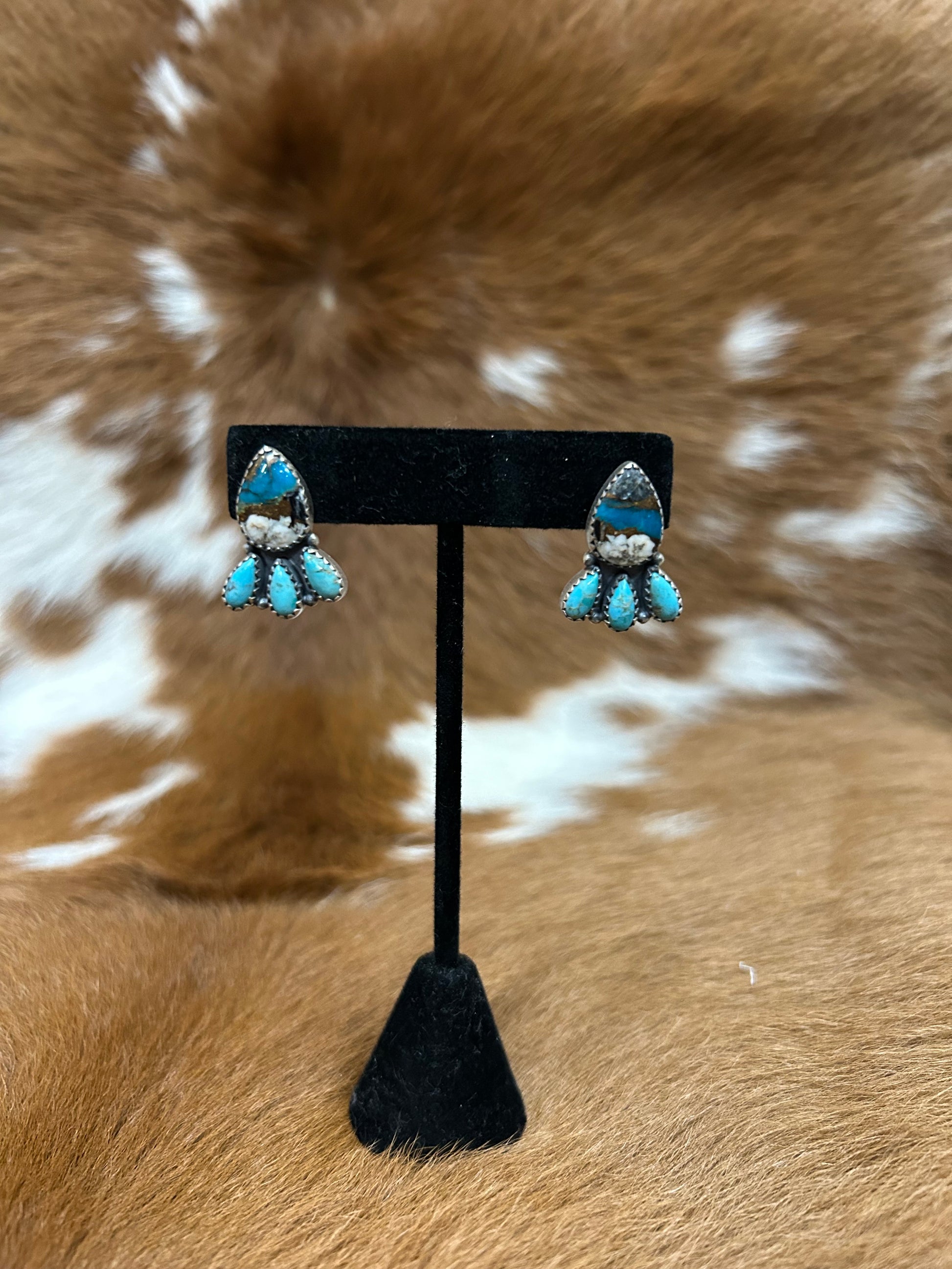 Crisp, cool, and totally captivating—these Dart Cluster earrings in White Buffalo and Turquoise are your new go-to pair! The striking contrast between creamy white buffalo and vibrant turquoise creates a look that's fresh and full of personality. Perfect for adding southwestern flair to any ensemble, these beauties work with everything from casual jeans to dressed-up occasions. The clustered design ensures maximum visual impact without feeling heavy. Grab these gems and let your ears celebrate in style!