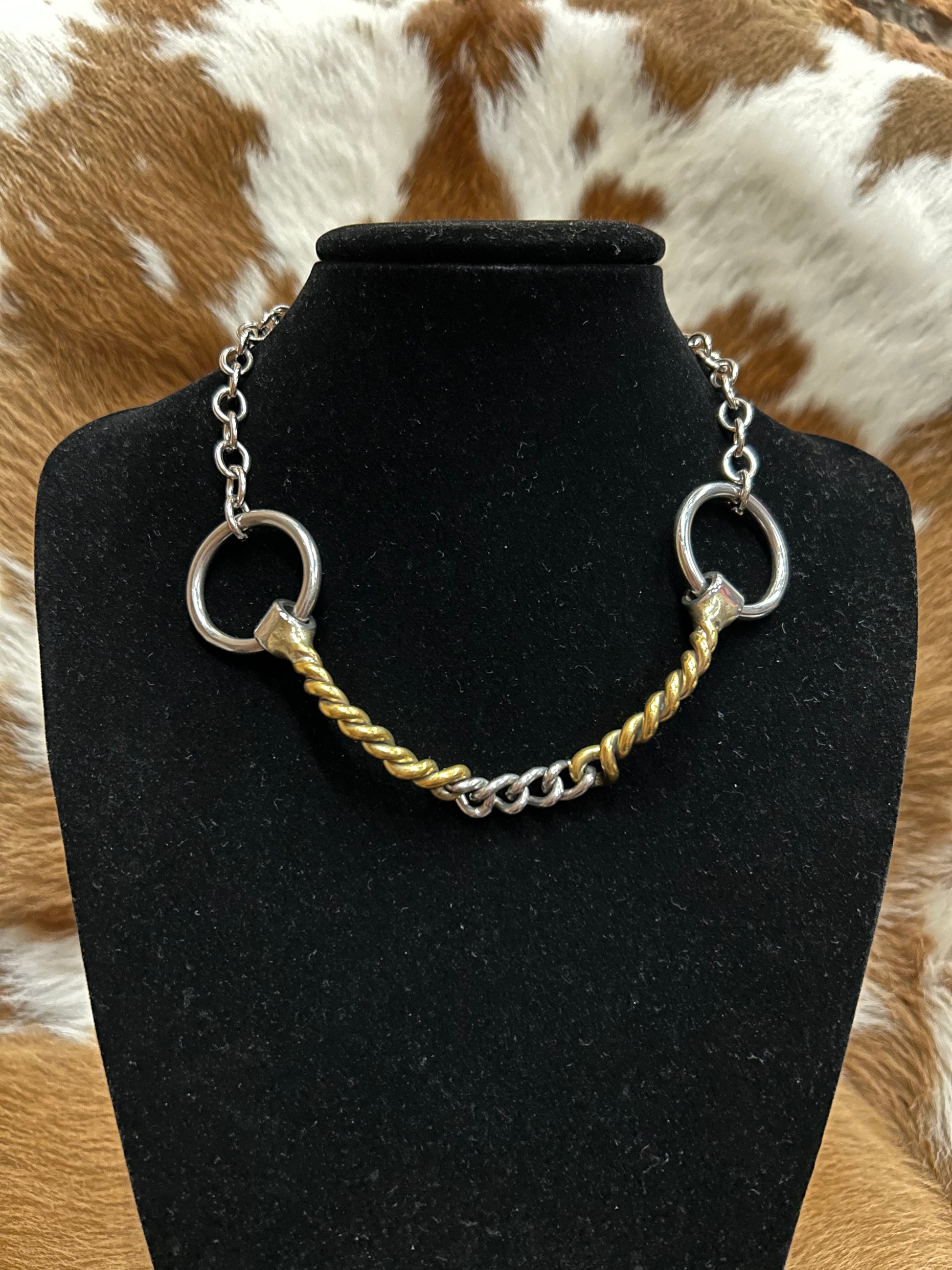 "Add a touch of cuteness to your jewelry collection with our Double Mixed Snaffle Necklace. This unique necklace is perfect for any outfit and a playful addition to your wardrobe. Show off your fun side with this quirky piece. (It's a must-have!)"