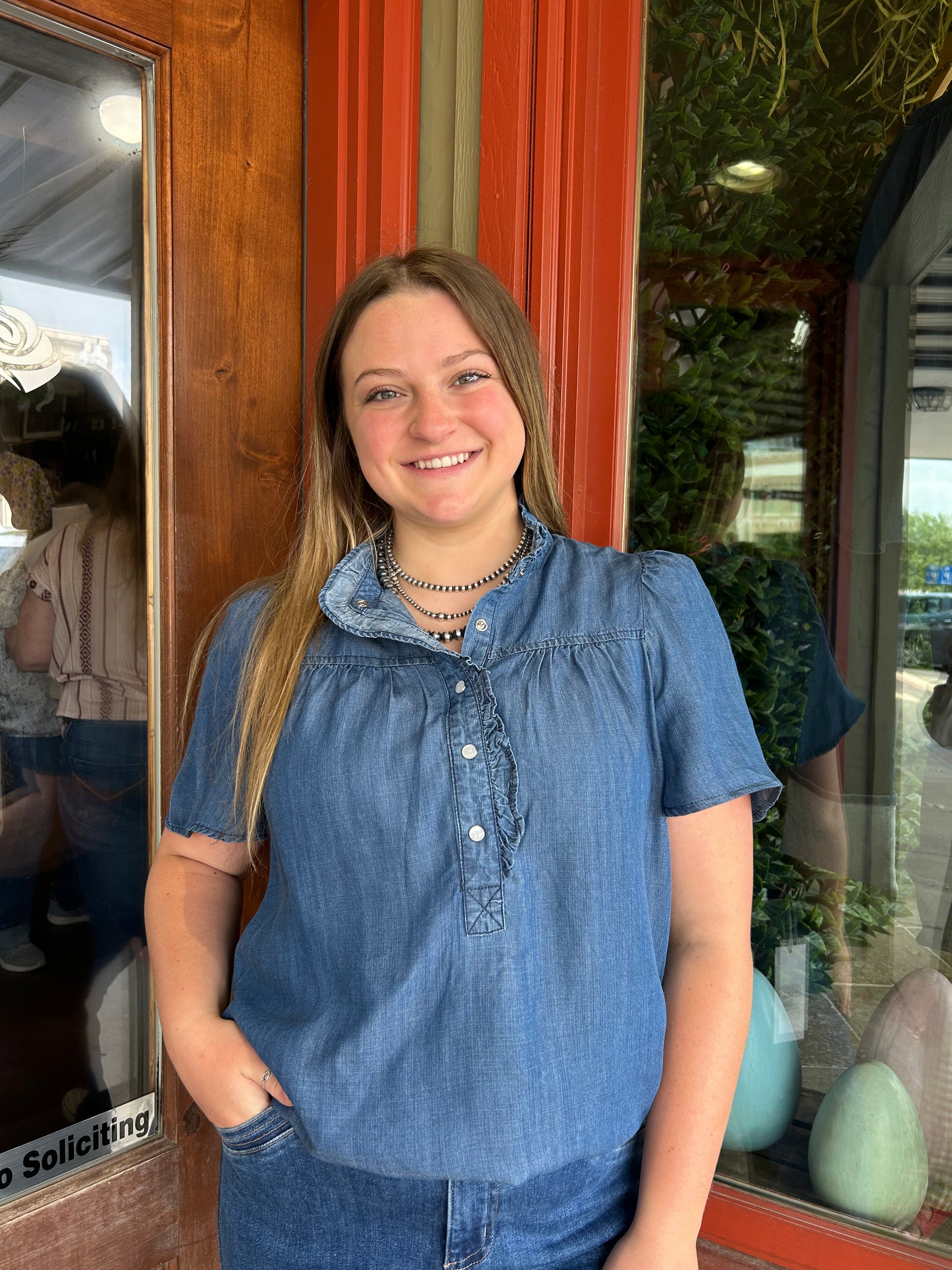 Get ready to rock a stylish and playful vibe with our Go To Denim Shirt! This cute shirt is perfect for adding a touch of fun to any outfit. With its quirky design, you'll be sure to stand out and make a statement. So why wait? Make this shirt your go-to piece for any occasion!