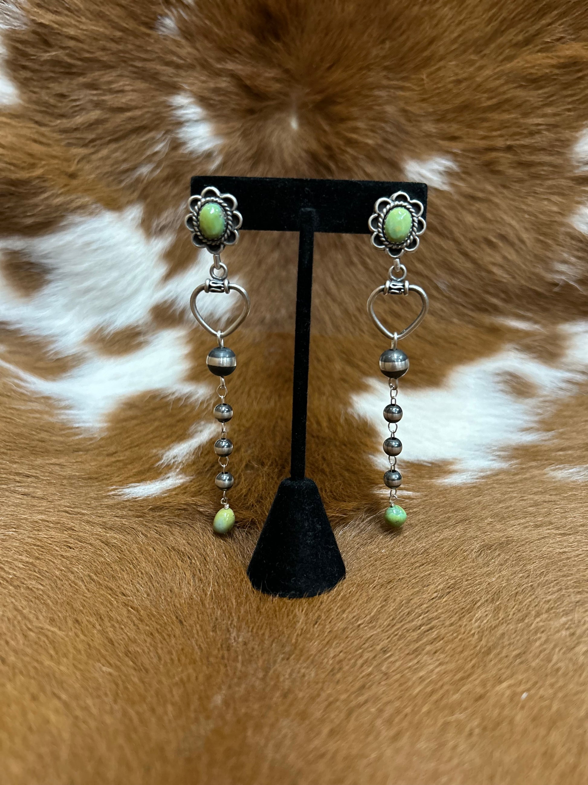 Dazzle with these gorgeous Green Turq Nav Chain Drop Earrings, where vibrant turquoise meets playful southwestern style. The delicate chain design adds movement and elegance, creating an eye-catching accessory that's anything but ordinary. Whether you're channeling your inner cowgirl or simply love statement jewelry with personality, these earrings deliver major style points. Light and comfortable for all-day wear, they're the perfect way to add a splash of color and whimsy to your favorite outfits.