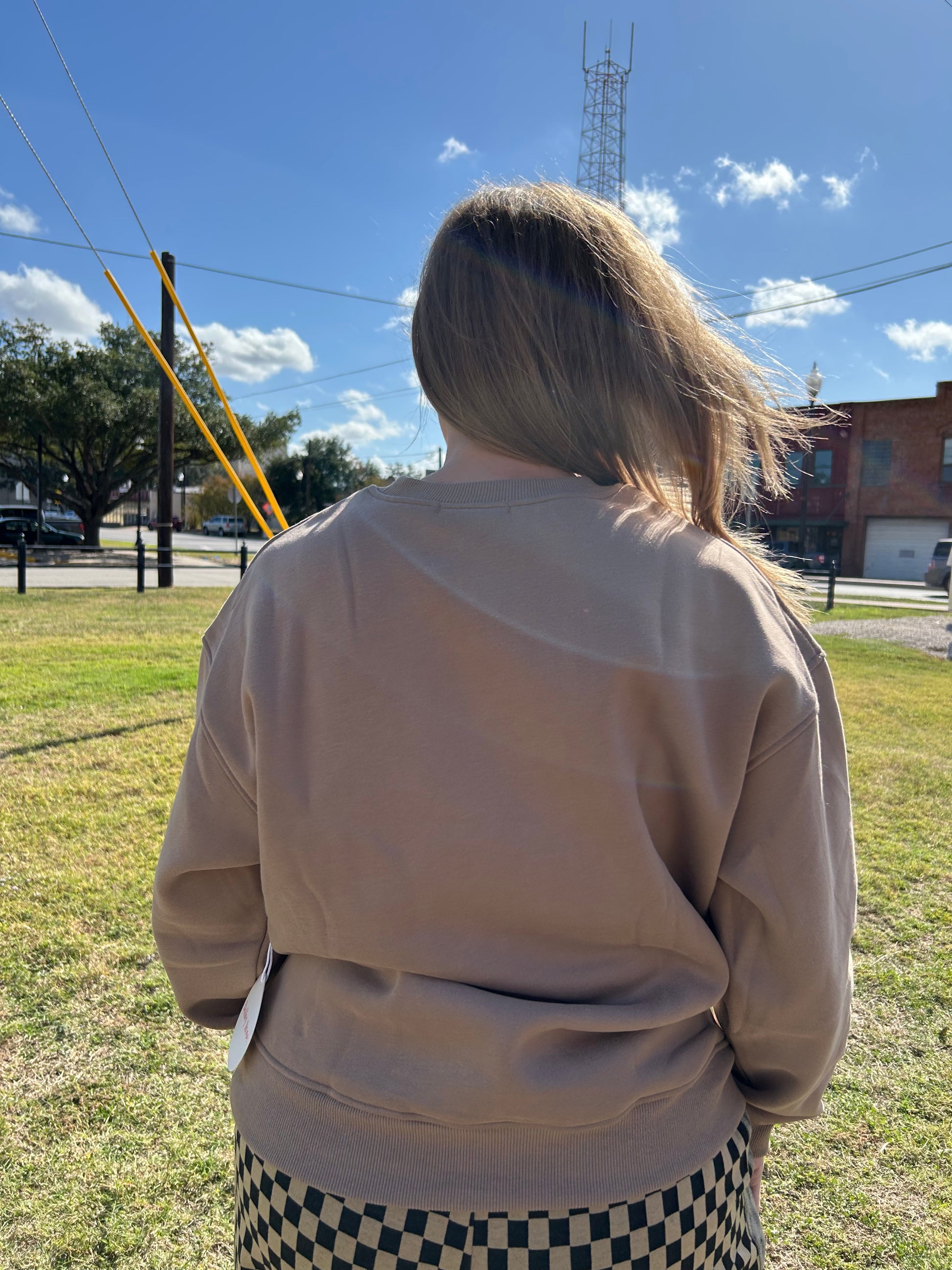 Chase comfort in style with the Hot Pursuit Sweatshirt—your new go-to for cozy vibes with attitude. Soft, warm, and ready for whatever adventure comes your way, this sweatshirt pairs perfectly with your favorite jeans or leggings. Whether you're lounging at home or out on the town, you'll feel effortlessly cool and undeniably comfortable. The perfect layer for Texas weather that keeps things fun and fabulous.