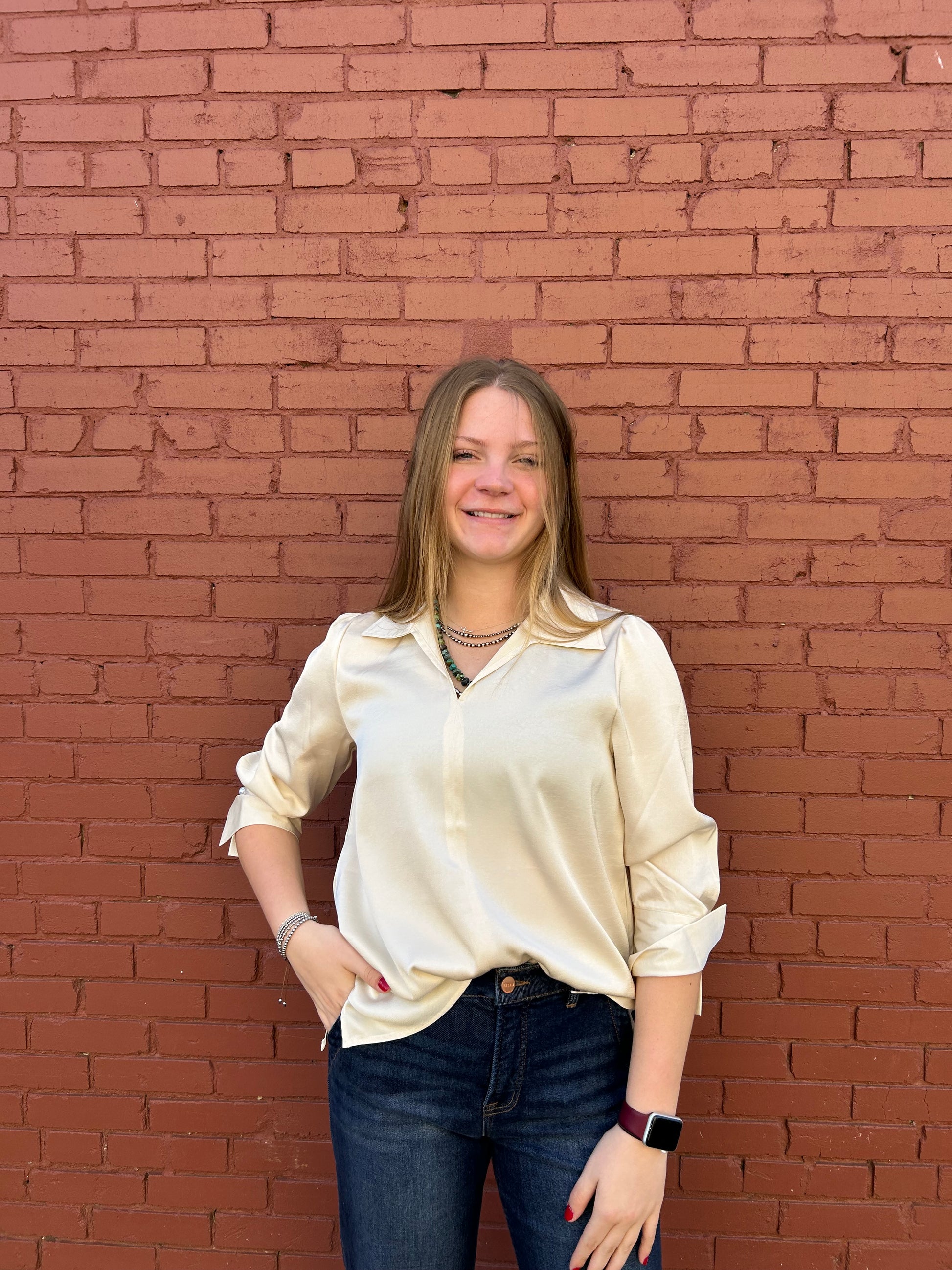 Elevate your everyday wardrobe with this timeless ivory shirt that strikes the perfect balance between sophistication and fun. Crafted for those who refuse to compromise on style, this versatile piece pairs effortlessly with everything from tailored trousers to your favorite denim. Whether you're heading to brunch or a casual night out, this wardrobe essential keeps you looking polished without taking yourself too seriously. A playful nod to classic elegance that works as hard as you do.