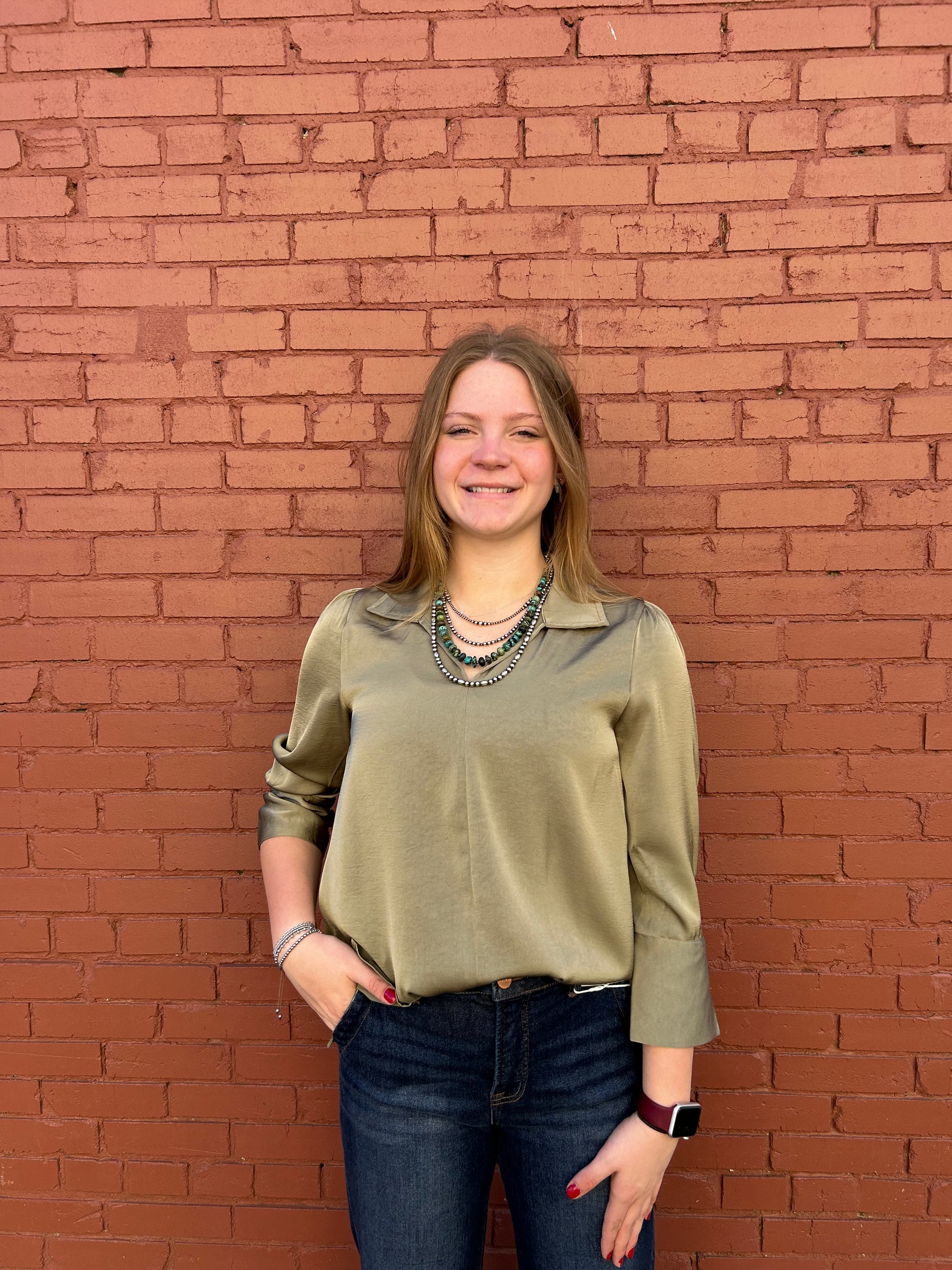Effortlessly chic and oh-so-wearable, this olive top strikes the perfect balance between laid-back comfort and polished style. The soft, flattering fit works beautifully for casual outings or dressed-up occasions, while the timeless color pairs with practically everything in your closet. Keep it classy with a piece that feels as good as it looks.