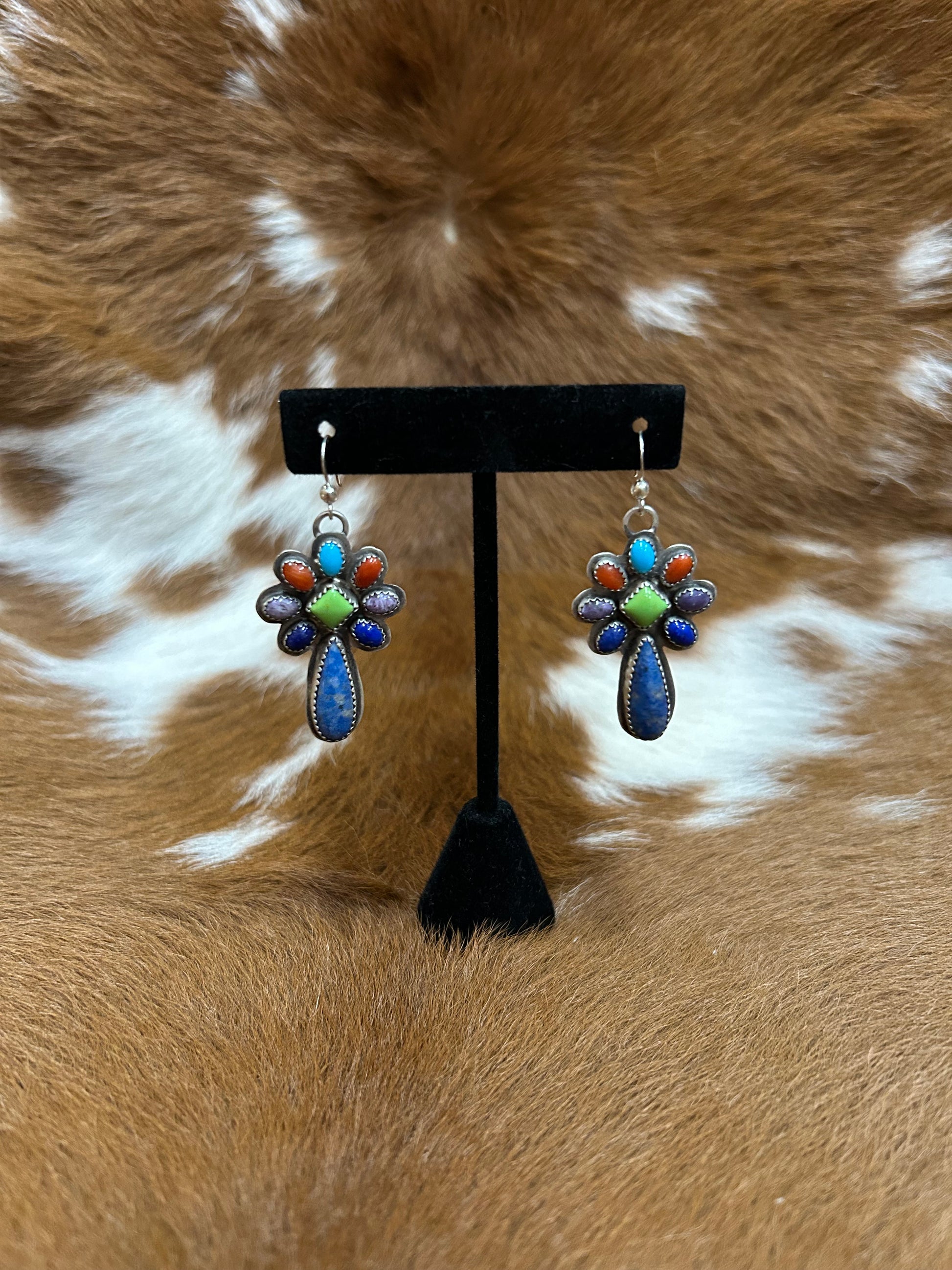 Elevate your look with these stunning lapis and mixed stone earrings that blend rich color with southwestern charm. Featuring deep blue lapis paired with complementary gemstones, these beauties create a mesmerizing palette that works with any outfit. The thoughtful stone combination adds depth and visual interest, making them perfect for both everyday wear and special occasions. Sophisticated yet playful, these earrings are a gorgeous way to express your unique style!