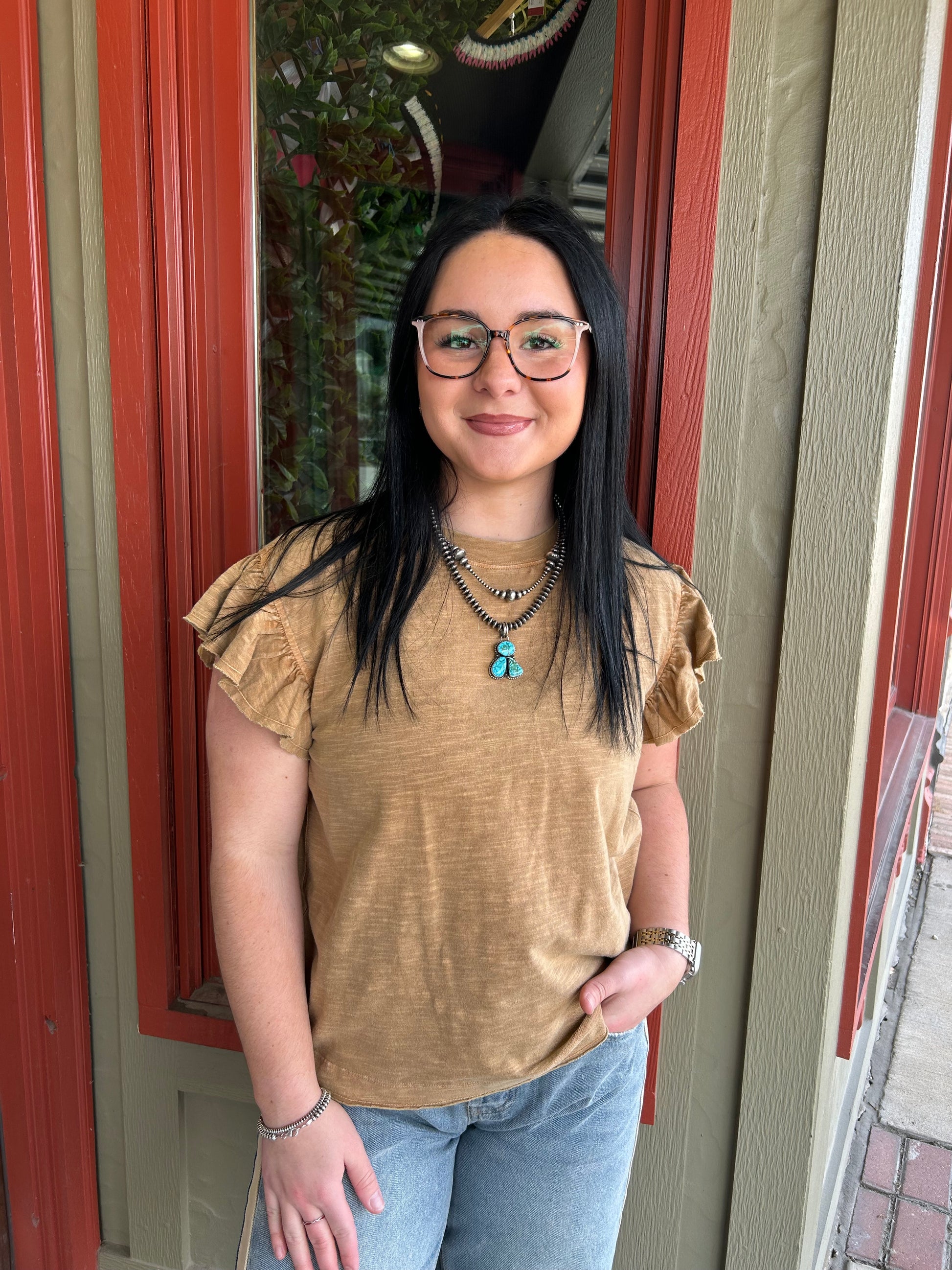 Rock this adorable camel Loni Top for a fun, flirty look. The perfect addition to any outfit, this top exudes cuteness with its playful style. Get ready to turn heads and make a statement with the Loni Top.