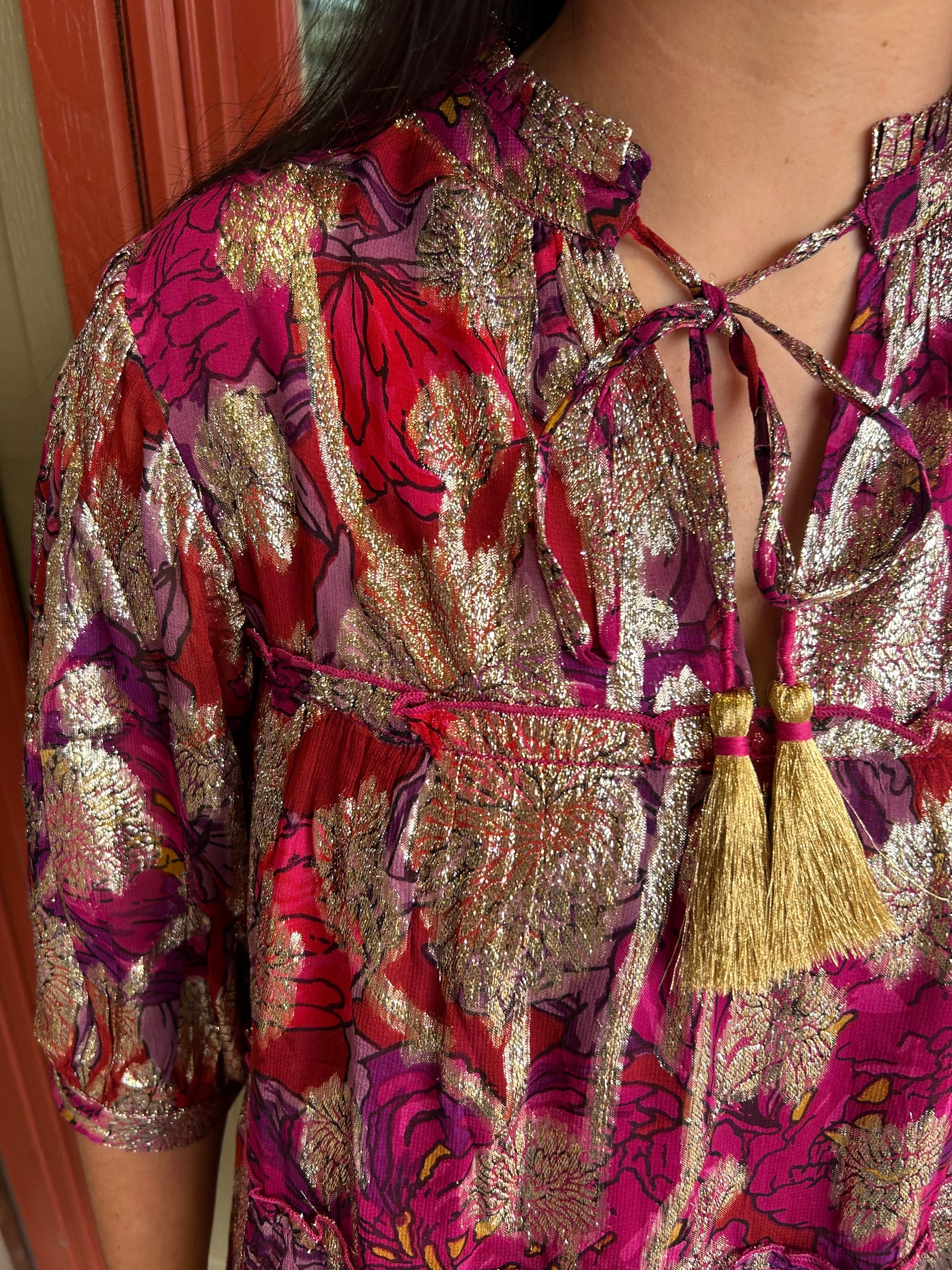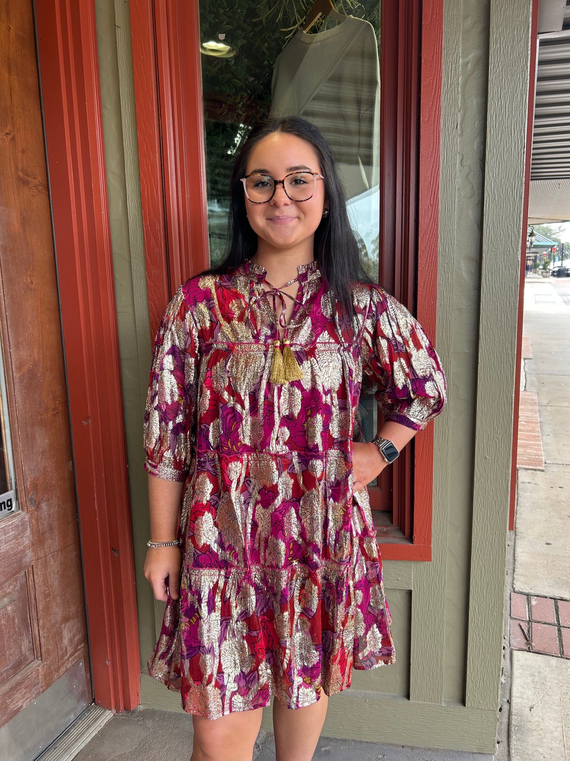 Shine bright in the Metallic Print Tiered Dress—a gorgeous piece that's equal parts cute and captivating! The shimmering metallic print catches the light beautifully, while the tiered silhouette adds dimension and movement to every step. This dress is your go-to for making an impression, whether you're heading to a special event or just want to feel extra fabulous on an ordinary day. The flattering layers create a playful, feminine vibe that's impossible to resist. It's the kind of dress that makes you feel like the best version of yourself!
