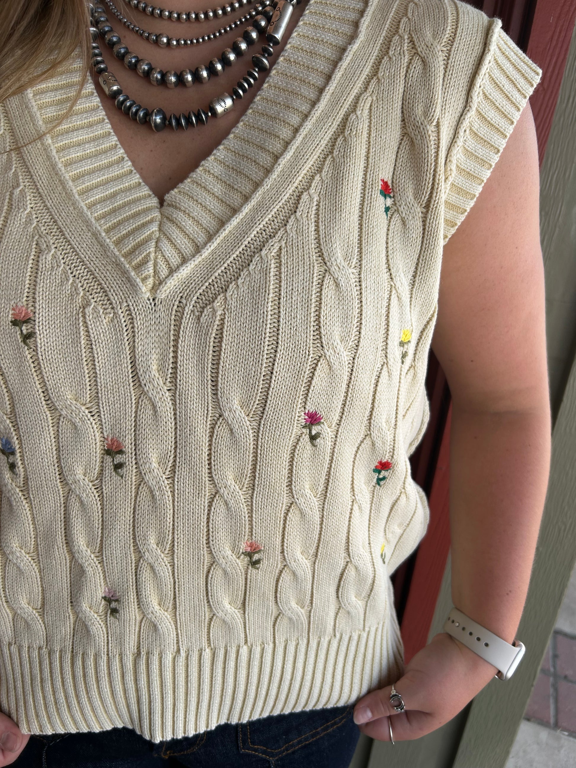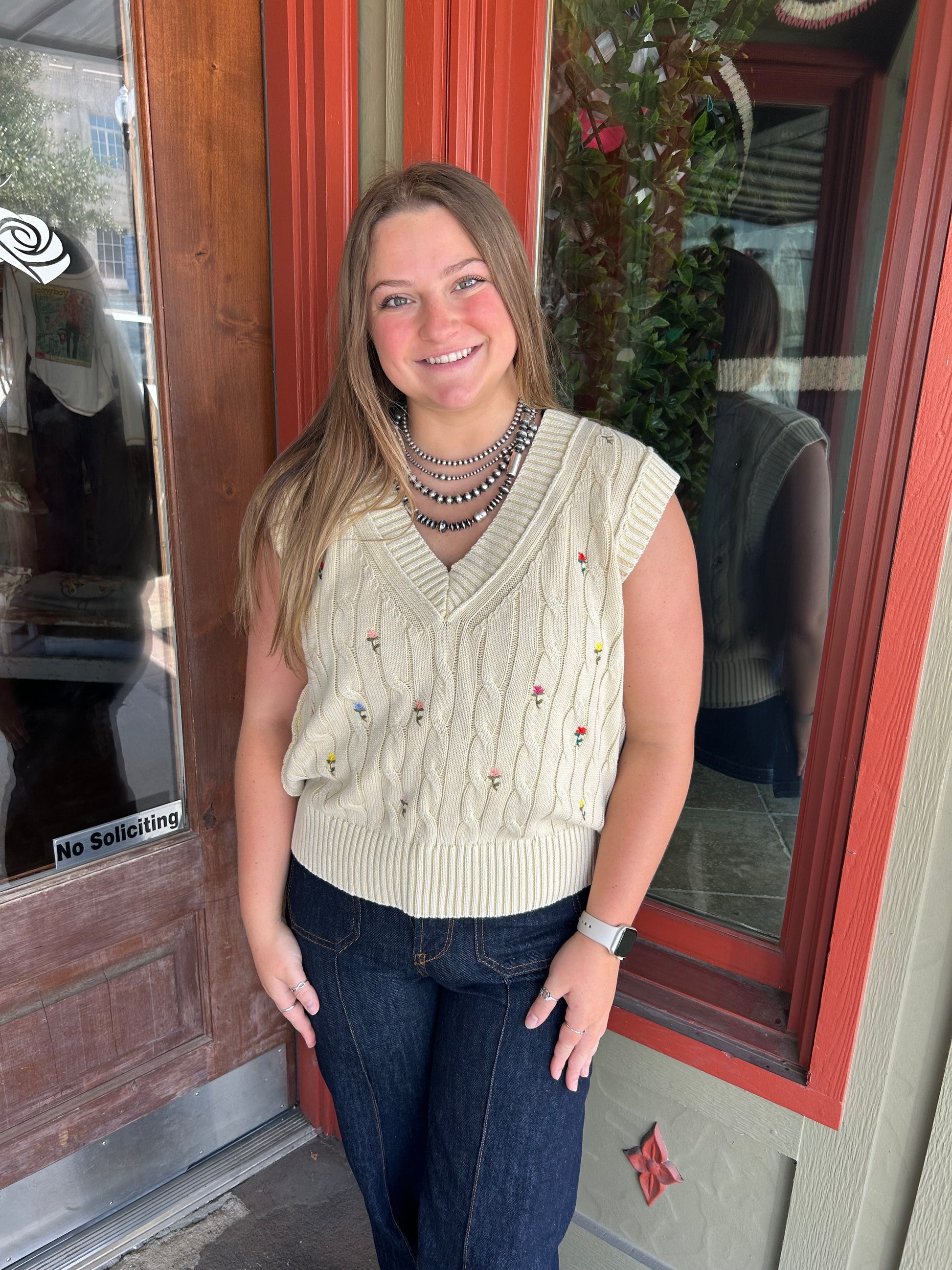 This cute Mini Flower Sweater Vest is sure to add a touch of whimsy to any outfit. The delicate flower design is a charming detail that will make you stand out from the crowd. Stay warm and stylish in this unique piece.