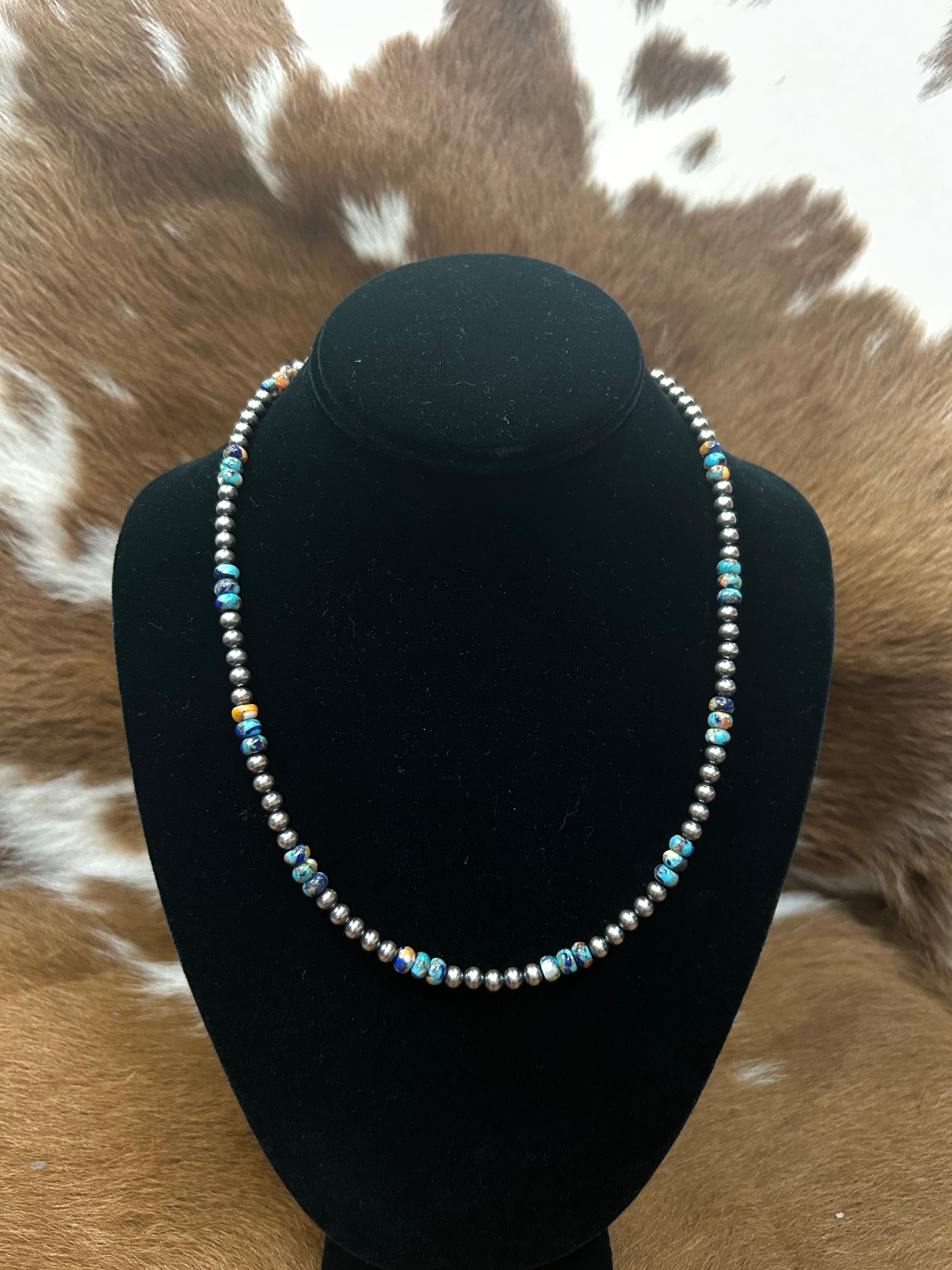 Get ready to turn heads with our Navajos W/ Lapis Mojave Necklace! This stunning piece will elevate any outfit with its unique design and bold presence. Stand out from the crowd and add a touch of quirkiness to your style. (Limited stock, get it before it's gone!)