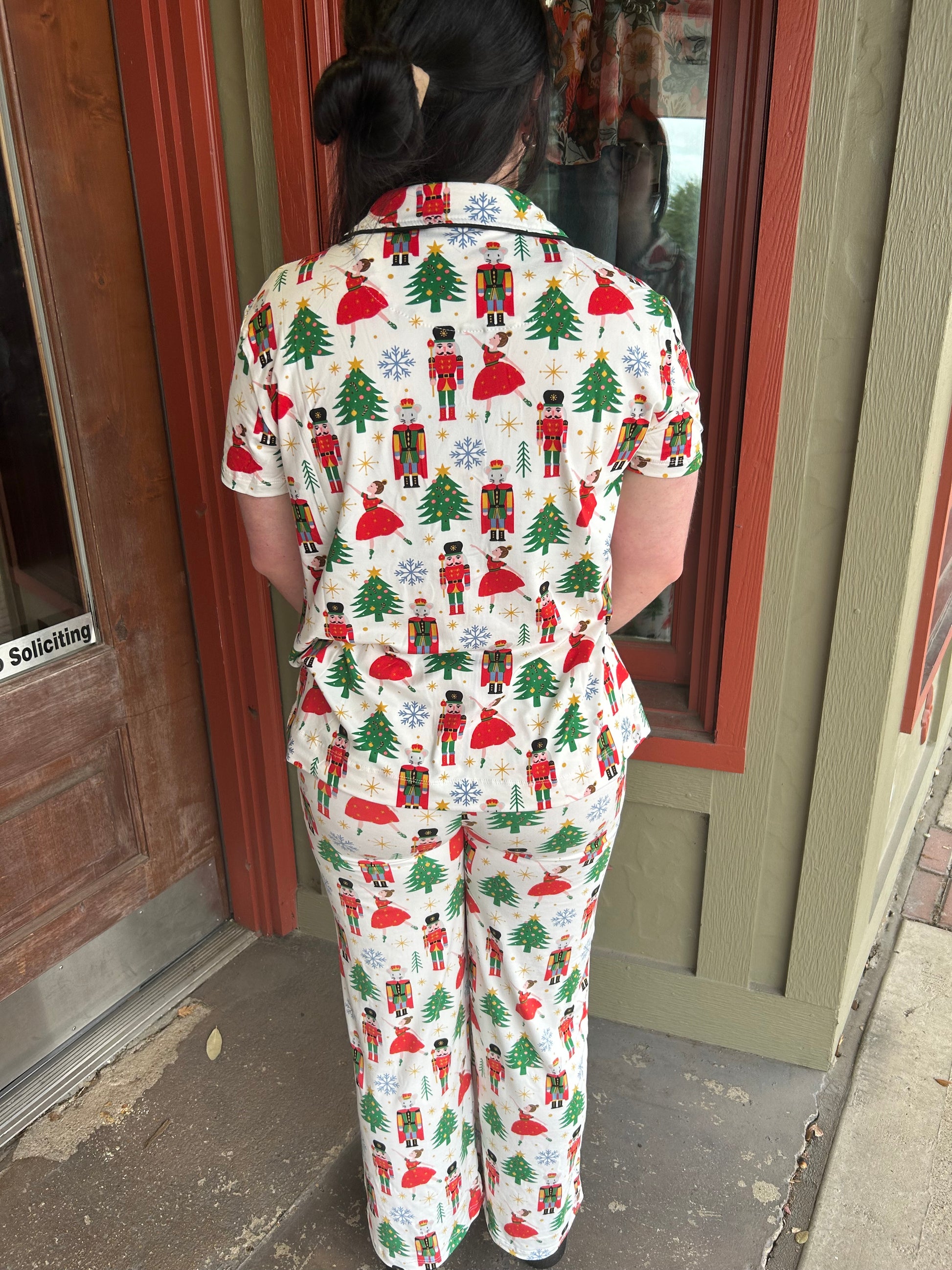 Crack into the holiday spirit with this adorable Nutcracker Pajama Set! Featuring whimsical nutcracker-inspired designs, these cozy pajamas bring festive charm to bedtime. Perfect for snuggling up during the season, this playful set combines comfort with seasonal style. Whether you're settling in for a winter's nap or getting ready for holiday gatherings, these cute pajamas deliver warmth and cheer in every stitch.