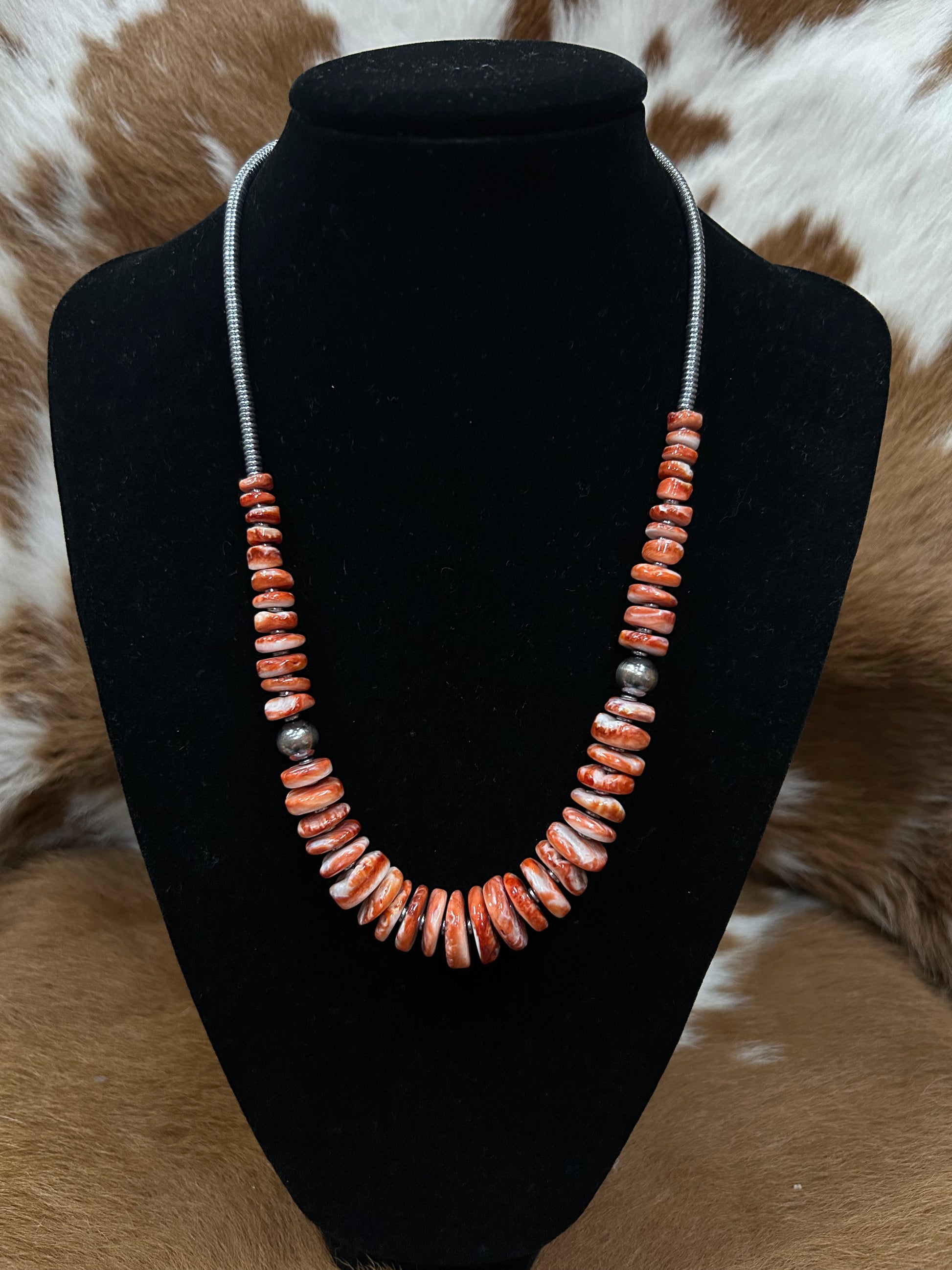 Expertly crafted with a unique orange spiney stone, this necklace exudes both elegance and cuteness. Add a pop of color to your outfit and showcase your impeccable taste with this one-of-a-kind accessory.