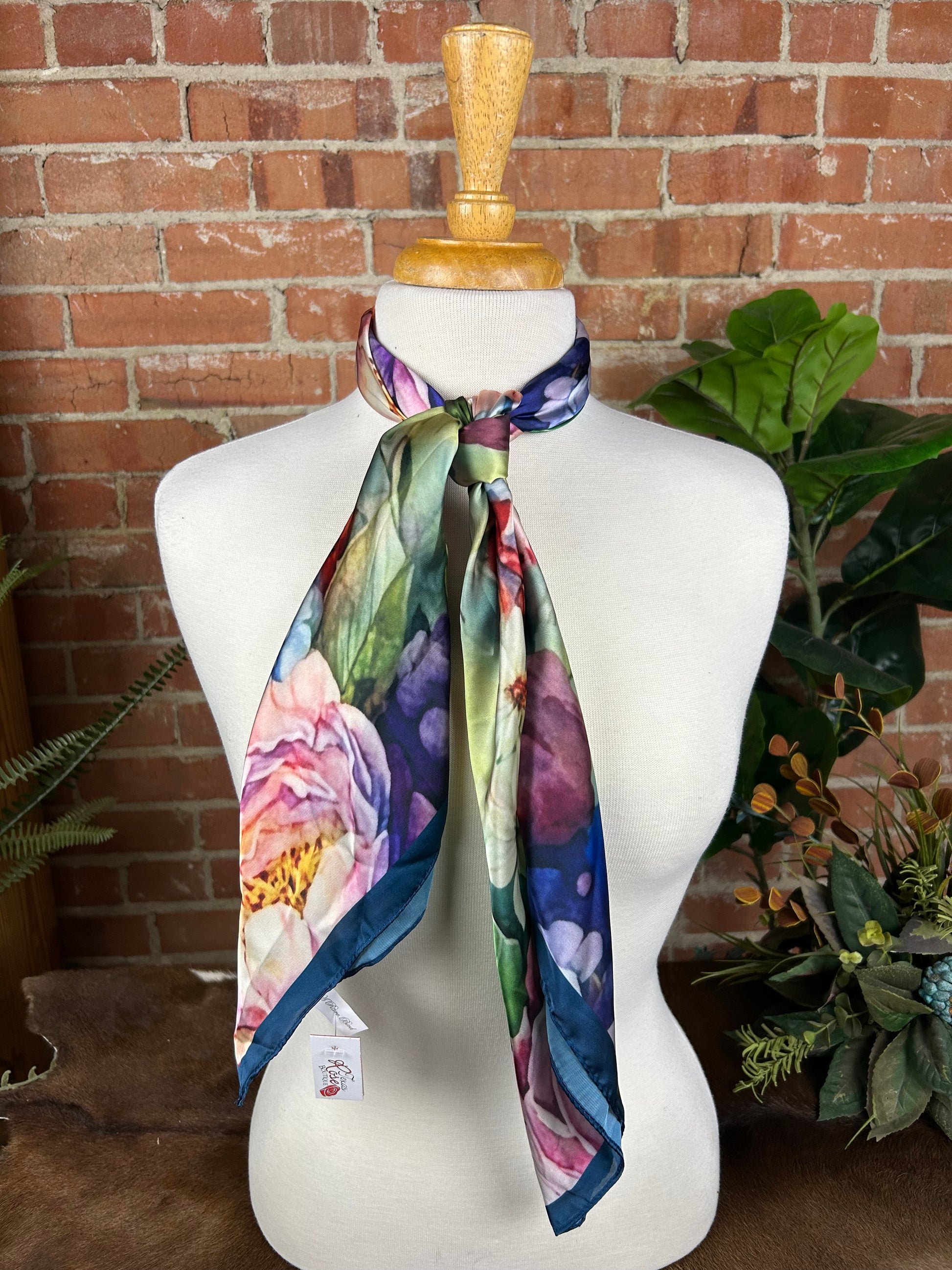 Strut your stuff with this eye-catching Peacock Floral Wild Rag! Featuring vibrant peacock-inspired patterns and delicate florals, this accessory brings a playful pop of personality to any outfit. Perfect for adding a touch of whimsy to your western wear, whether you're tying it around your neck, wrist, or using it as a bandana. Soft, versatile, and absolutely adorable—this wild rag is your new go-to accessory for standing out with style and charm.