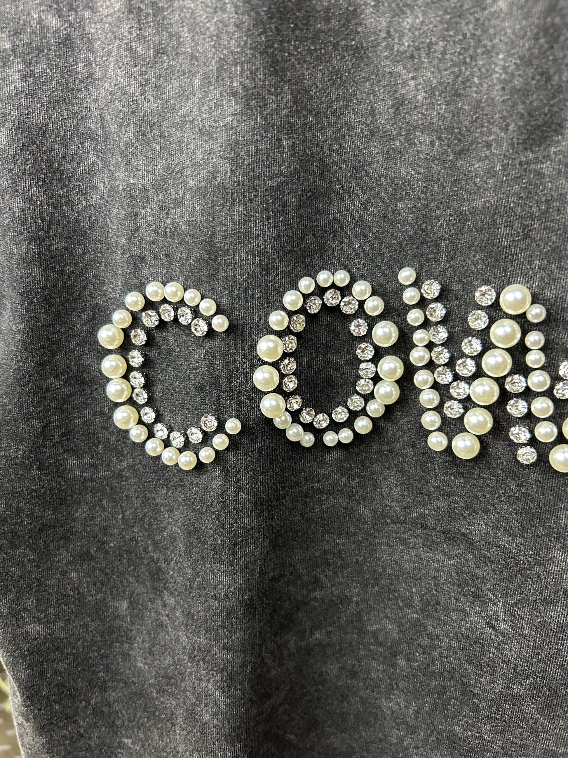 Meet your new favorite tee—the Pearl Cowgirl Tee is so cute, you'll want to wear it everywhere! This playful Western-inspired piece celebrates cowgirl confidence with a touch of pearl-adorned charm. Perfect for ranch days, casual outings, or anyone who loves a little sass with their style, it's the ideal way to show off your spirited personality. Soft, flattering, and undeniably charming—saddle up and make this adorable essential yours!