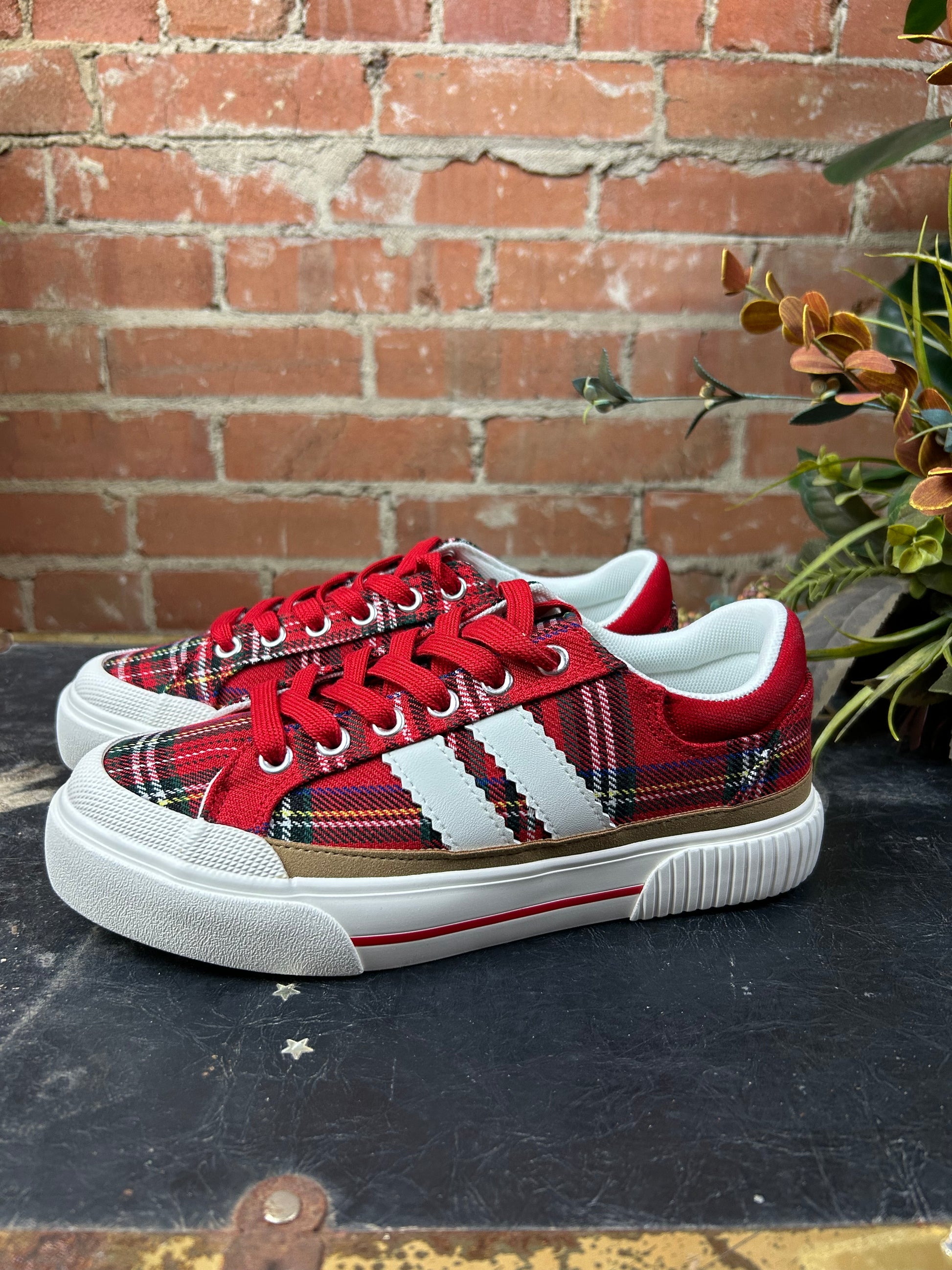Step into style with the That's Her Sneaker in Red Plaid—a playful pop of pattern that brings personality to every step. This cute, eye-catching design features classic red plaid detailing that pairs perfectly with casual outfits, from jeans to skirts. Whether you're running errands or hanging out with friends, these sneakers deliver comfort and charm in one adorable package. A must-have for anyone who loves bold, fun footwear!