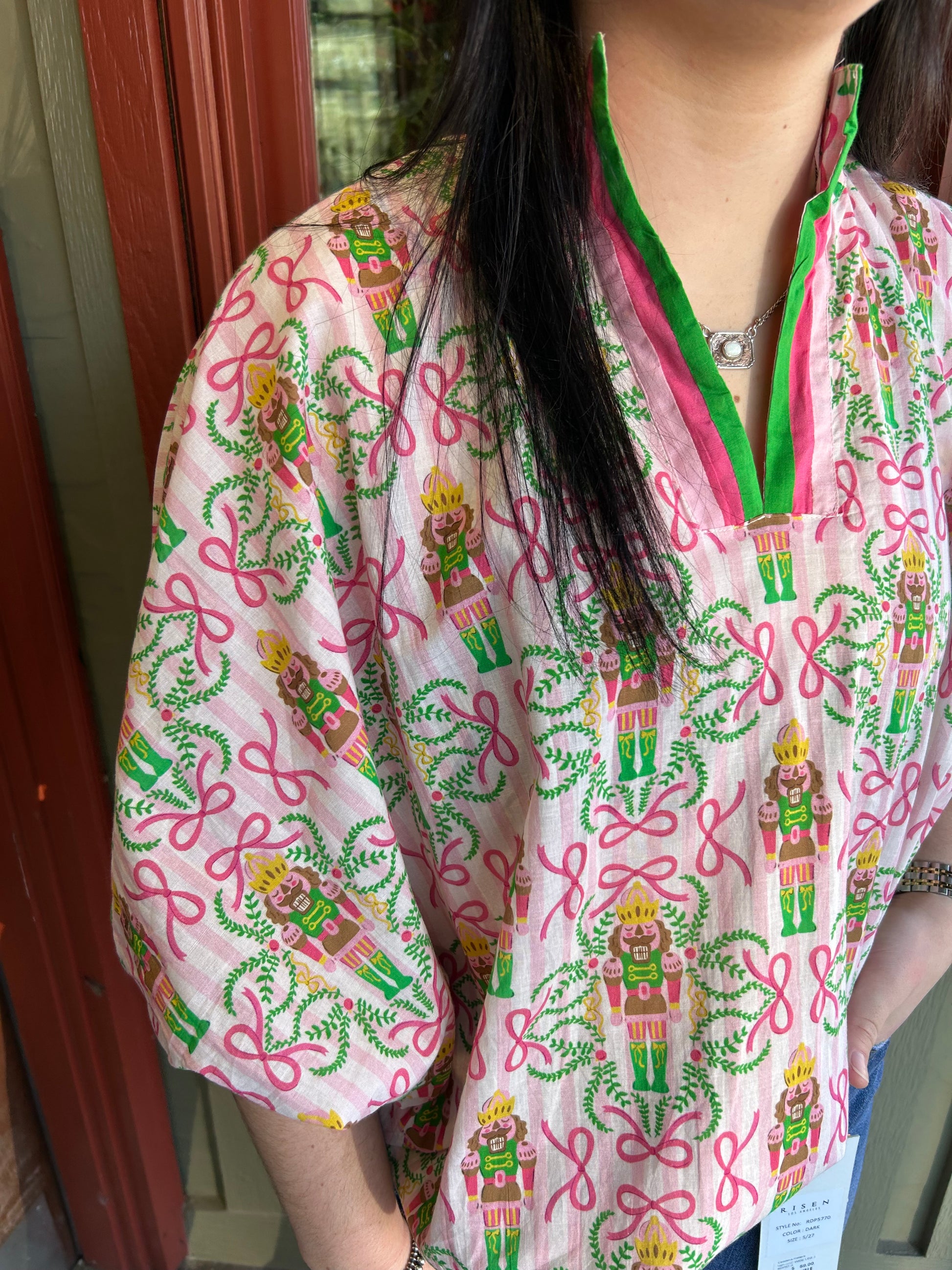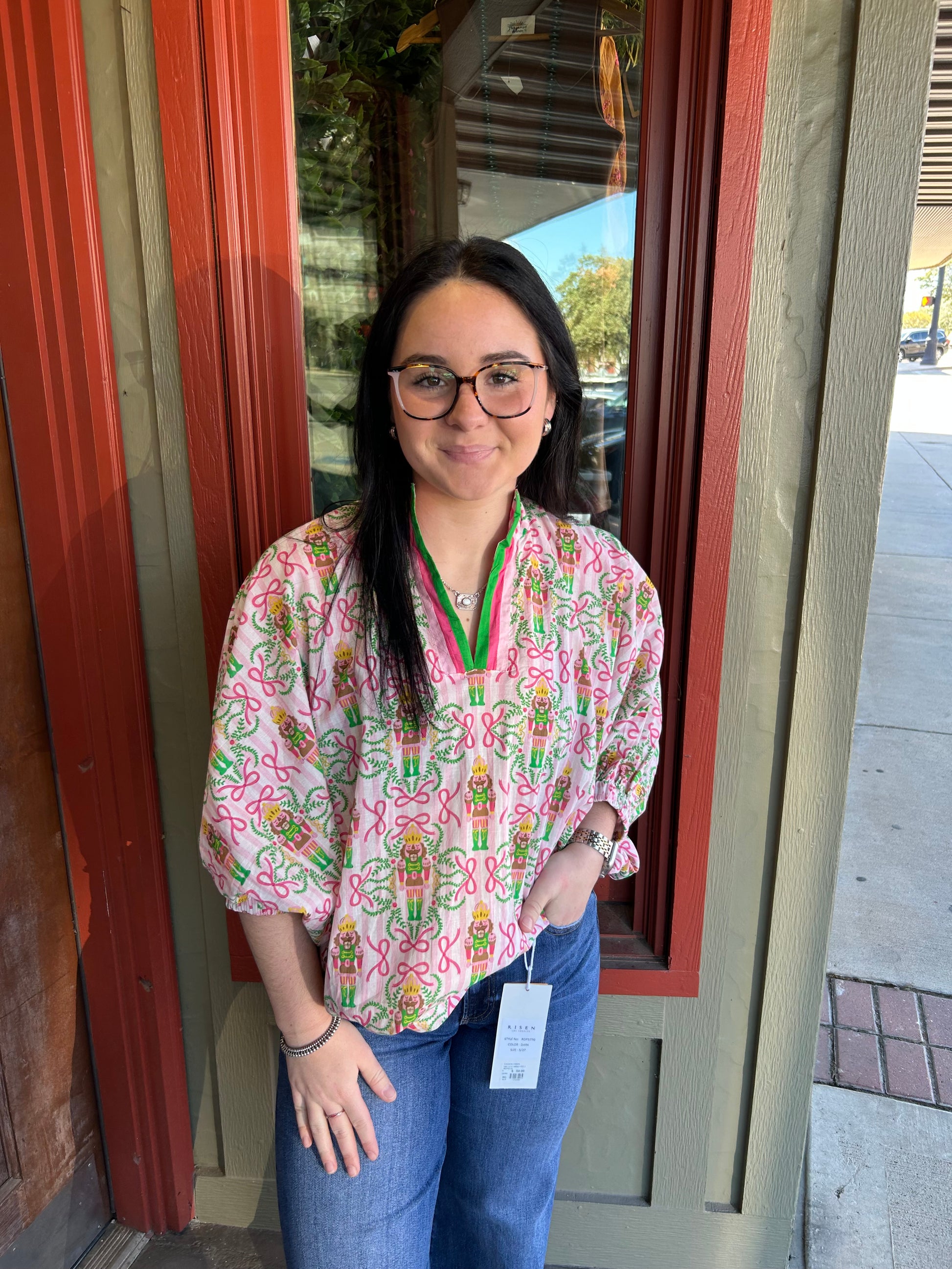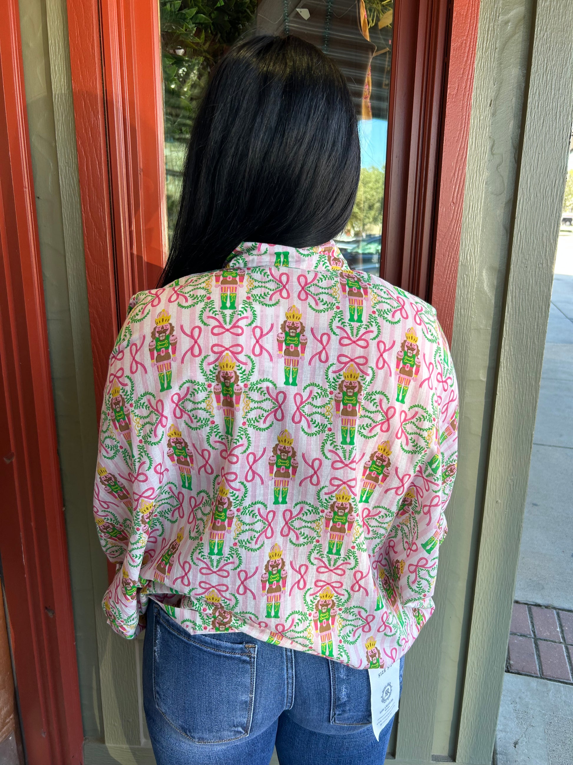 Nutcracker magic meets everyday style with the Tori Top! This adorable piece brings festive charm and whimsical character to your wardrobe. Perfect for holiday gatherings, cozy nights in, or whenever you want to sprinkle a little seasonal joy into your day. The playful design captures that beloved nutcracker spirit while keeping things fun and wearable. A delightful addition to any Texas Rose Boutique lover's collection!