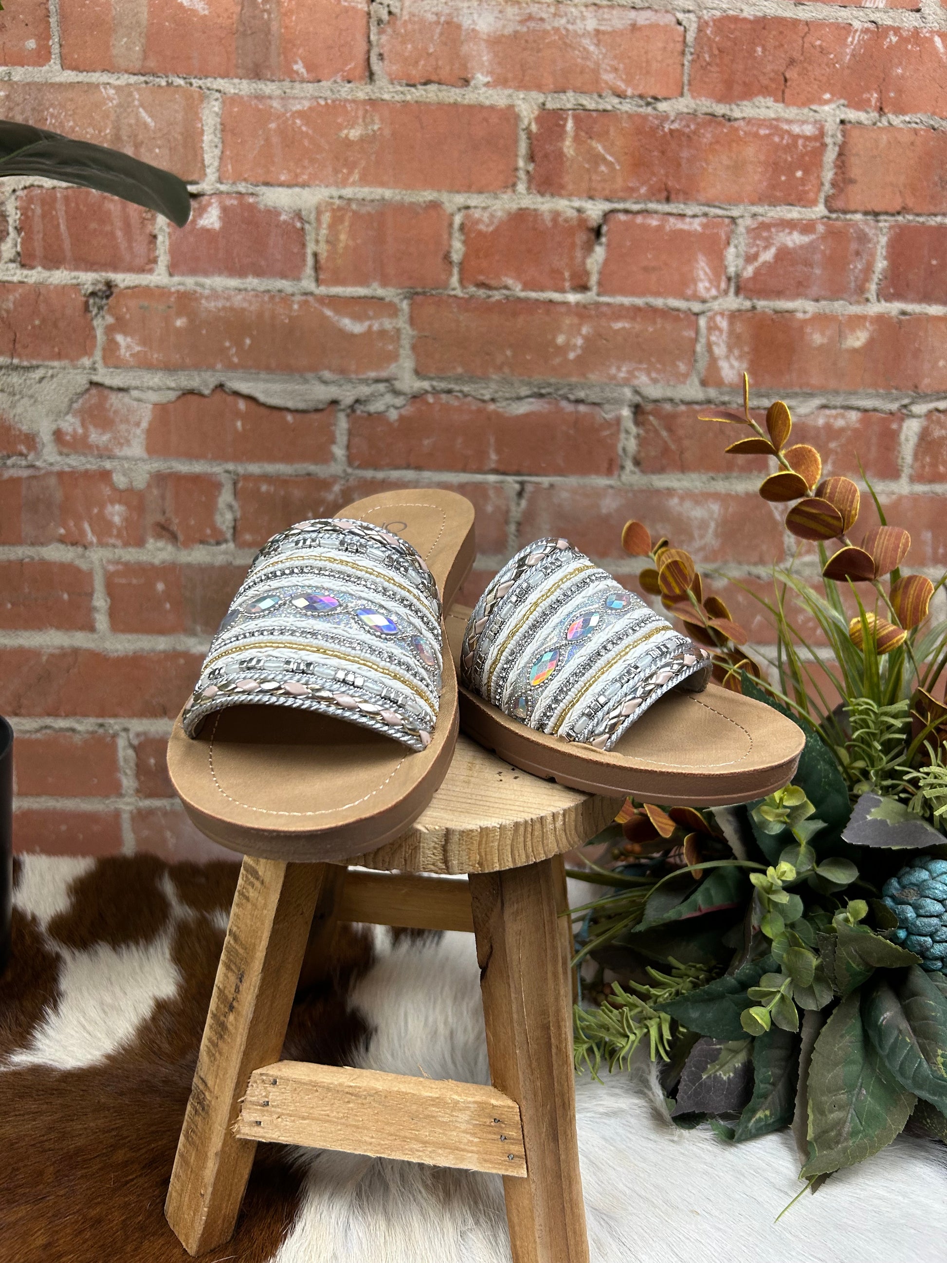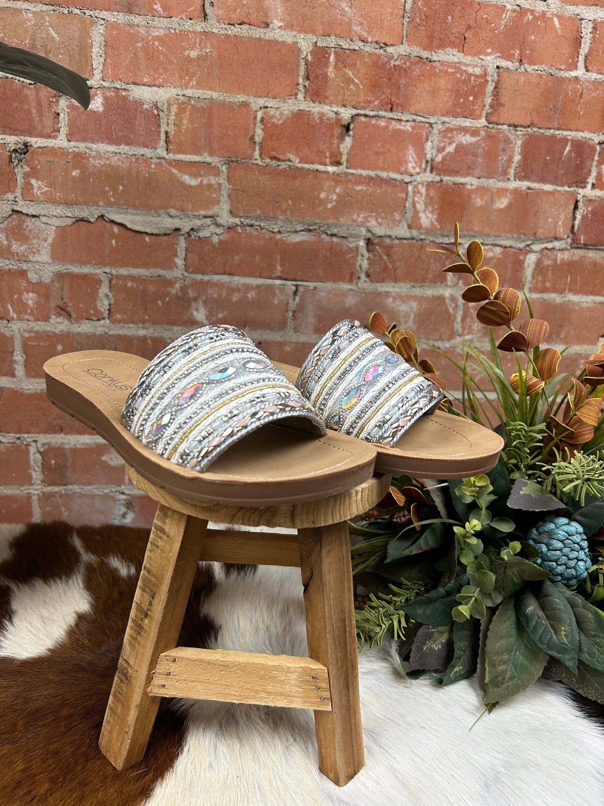 Slip into paradise with our Vacation Mode Slides in dazzling silver! These shimmery beauties are your ticket to poolside glam and beachfront swagger. Comfy enough for all-day adventures yet sparkly enough to catch everyone's eye, they're the perfect excuse to wiggle your toes and show off that pedicure. Who said practical can't be fabulous?