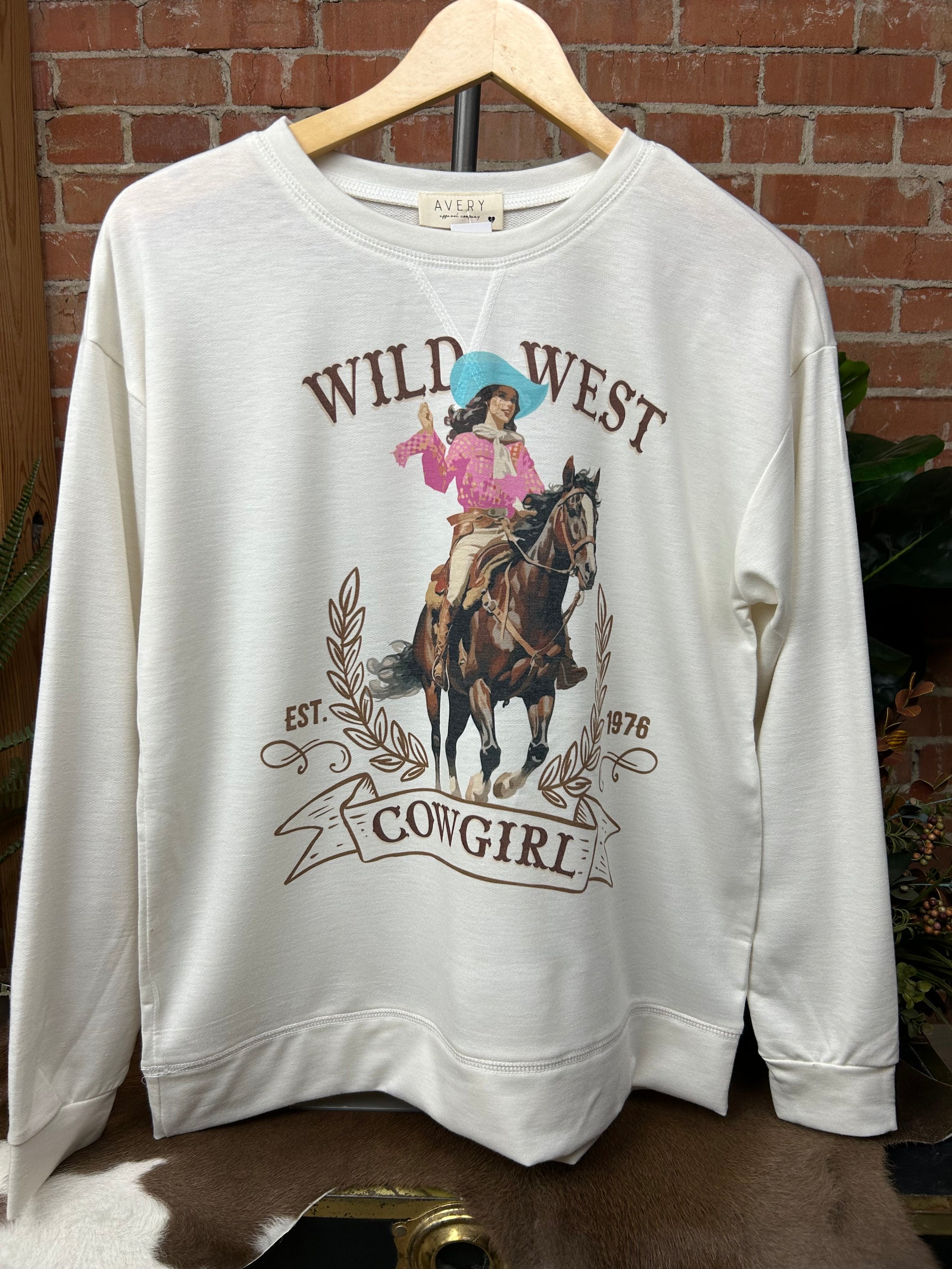 Wrap yourself in Wild West charm with this adorable sweatshirt that's equal parts cozy and cute. Featuring a playful design that celebrates frontier spirit with a wink and a smile, it's the ultimate comfort piece for anyone who loves a little Western whimsy. Perfect for layering on cool days or lounging at home, this sweatshirt brings warmth, style, and personality to your closet. Saddle up in softness and let your fun-loving side shine through.