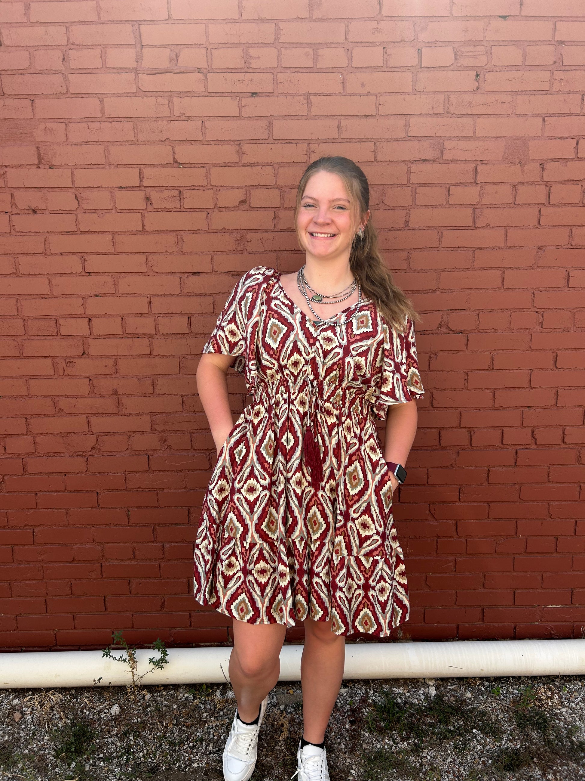 Get ready to zigzag into style with the Ziggy Dress! This fun and cute dress will have you standing out in any crowd. With its unique pattern and playful design, the Ziggy Dress is sure to be a wardrobe favorite. (And it's perfect for dancing the night away!)